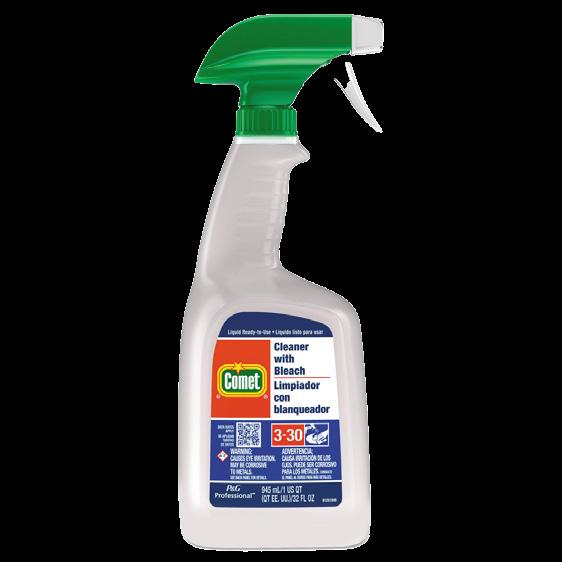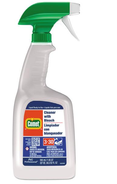 Tackle tough stains and everyday grime with the cleaning power of Comet® with Bleach. This ready-to-use trigger spray cuts through soap scum, grease, and mold and mildew stains while deodorizing surfaces for a fresh, clean finish. Ideal for restrooms, kitchens, and other high-traffic areas, it delivers powerful whitening and disinfecting performance in a convenient 32 oz spray bottle.
