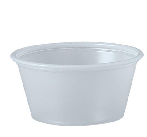 Made of durable, crack-resistant polypropylene, a sturdy choice for serving anything from salad dressing to whipped butter. The translucent PET lid construction allows customers to easily see the cup’s contents.