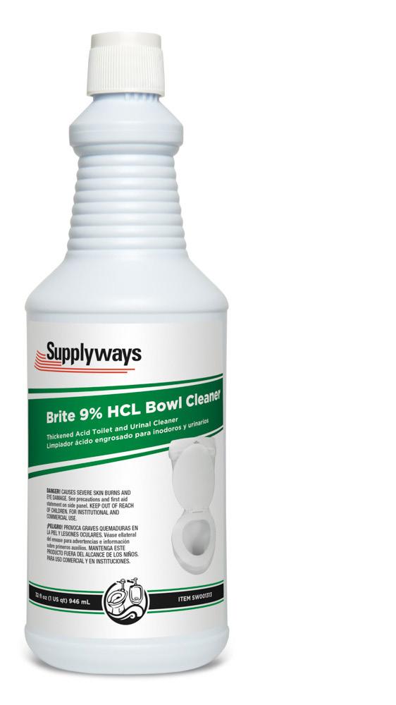 9% hydrochloric acid toilet bowl cleaner removes rust, scale, and hard water mineral deposits with a pleasant mint fragrance. Thickened formula clings to surfaces for better cleaning action.