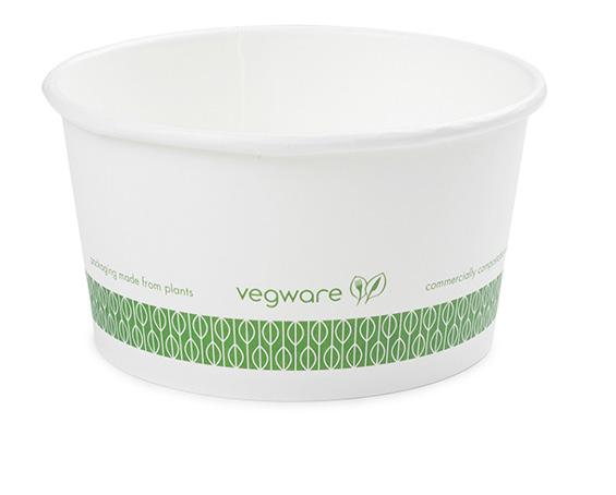 Compostable food containers, perfect for everything from hot soups and stews to ice cream sundaes. Features Vegware’s award-winning Green Leaf band for easy identification of compostable products. BPI certified compostable.
