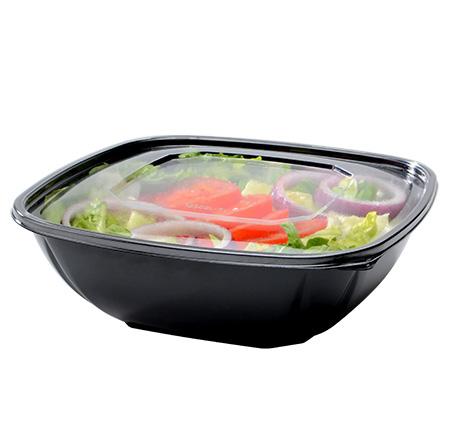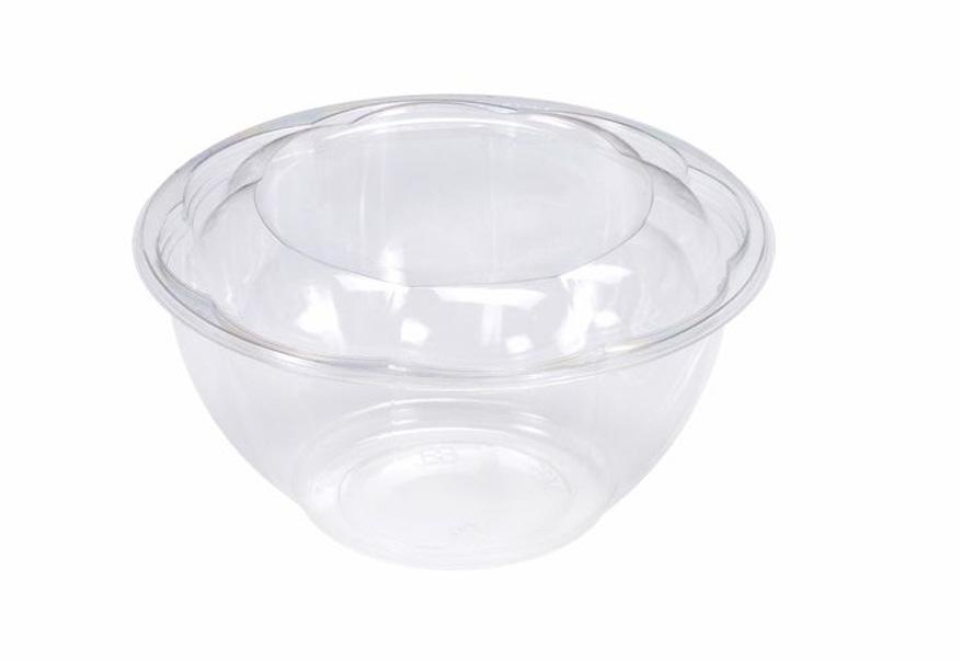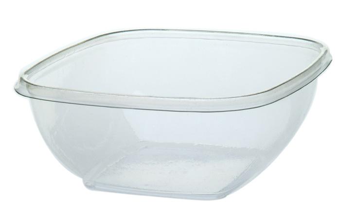 These crystal clear salad bowls with matching lids are made of durable, crackresistant and clear PET, the perfect complement for pre-packed or fresh salads and cut fruit. The no-spill lid is perfect for stacking.