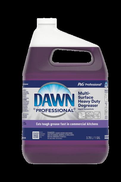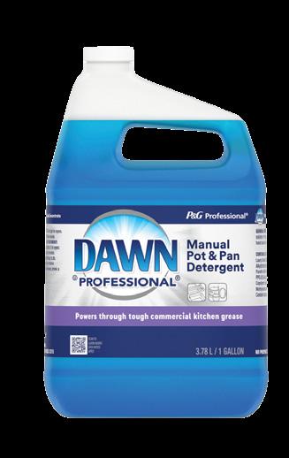 Dawn dishwashing detergent with long-lasting suds cleans 58% more greasy pots and pans vs. Dawn non-concentrated. Superior grease fighting power vs. leading competitive products. Broad Range Quaternary Sanitizer is formulated for third sink sanitizing of dishes, pots, pans, and cooking utensils. Requires P&G professional dispenser.