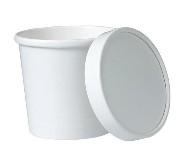 For soups and hot carry-out foods. Extra-rigid paper, poly-lined inside and out.