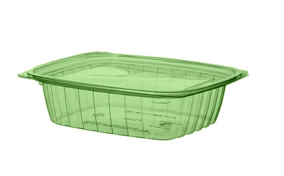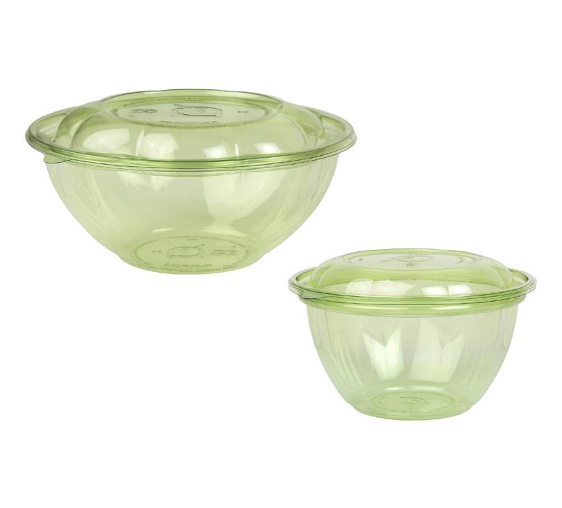 Perfect presentation for salad bars - serve cold salads, deli treats, or fruit. Made from PLA, a renewable material, made from plants. Green tinge to help customers in Washington and Colorado comply with legislation. Designed for industrial composting.