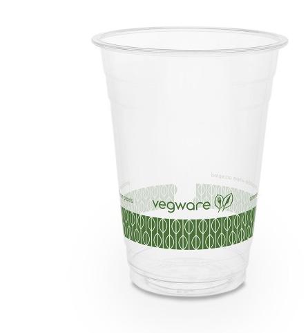 Plant based clear cup for cold drinks, desserts, crudités, mini salads, or healthy snacks. Made from PLA, a renewable material made from plants. Clear for visibility, with Vegware messaging in green. Award-winning quality by Vegware. Commercially compostable where accepted. BPI certified. VR360YG