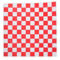 Grease resistant food wrap or basket liner. Available in white and colored check patterns.