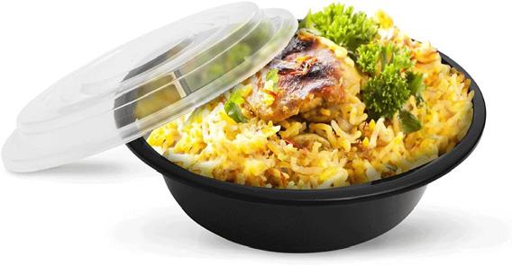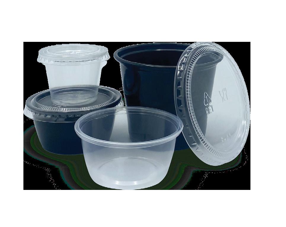 Polypropylene bowls and lids packaged together in the same carton to ensure consistent quantities and easy inventory management. Suitable for both hot and cold applications, these containers are microwaveable and feature lids with a tight seal to prevent leaks and maintain freshness during transport. Black base with clear lid.