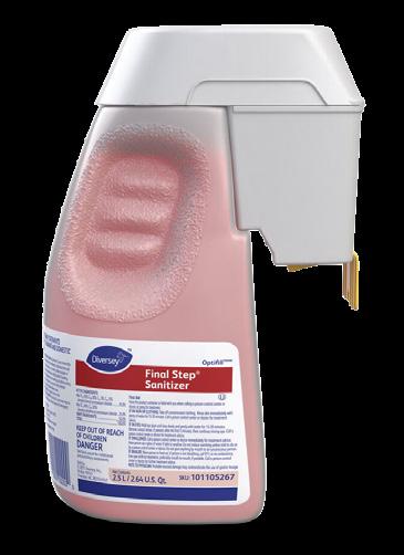The Optifill™ dispensing system delivers consistent chemical dilution without complicated equipment. Sealed packaging connects directly to the dispenser, eliminating manual measuring while helping reduce waste, improve safety, and simplify staff training.