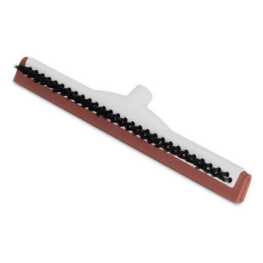 The combination of squeegee and scrubbing bristles makes this a perfect tool for heavy-duty floor care. Squeegee has plastic frame with double foam red rubber. Use standard threaded handle (sold separately).