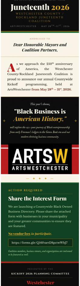 CALENDAR SUBMISSION: Please use a brief paragraph to describe your event. The paragraph should include event name, date(s), time, location and contact information. Send calendar information via email to westchestercountypress@yahoo.com. Please type “CALENDAR EVENT” in the subject bar