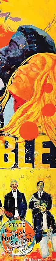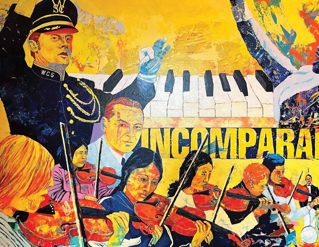 On the inside cover you will see a new piece of artwork by WCU alumni Al Moretti, class of 73’. You can find this amazing 7X5 foot painting in the entrance of our Wells School of Music Welcome Center. Al Moretti’s painting pays homage to our rich musical history including Dr. Jim Wells, Dr. Charles Swope, and an image of one of our West Chester State Normal School ensembles. Please visit our building to see this new work of art and all of the wonderful paintings adorning our hallways and library of famous composers created and donated by Al Moretti and curated by retired faculty member John Baker.