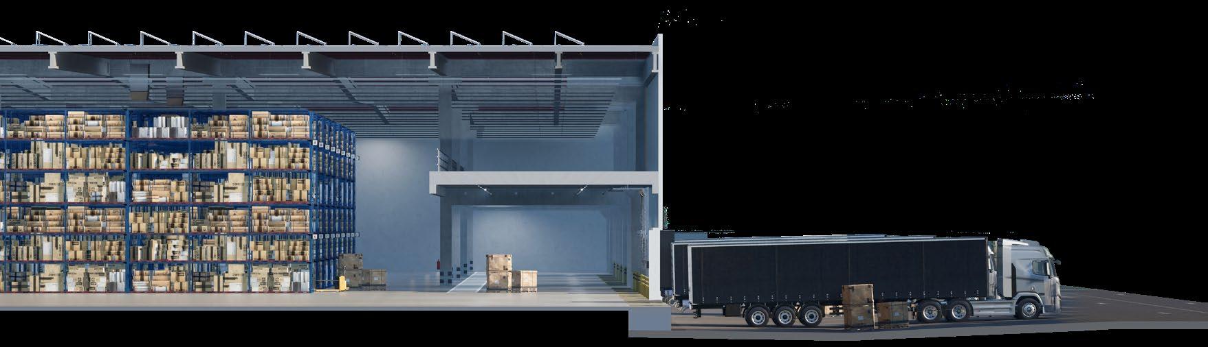 • Lichtstraten in de gevel voor extra daglicht in het magazijn