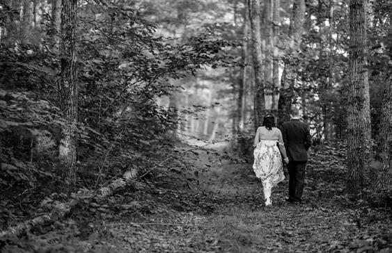 The highlight of the day for me, as their photographer, came after the family portraits were done. I had arranged a miniportrait session with the newlyweds. We took a leisurely walk in the woods behind the property, taking our time to capture their bond in the serene woodland setting.