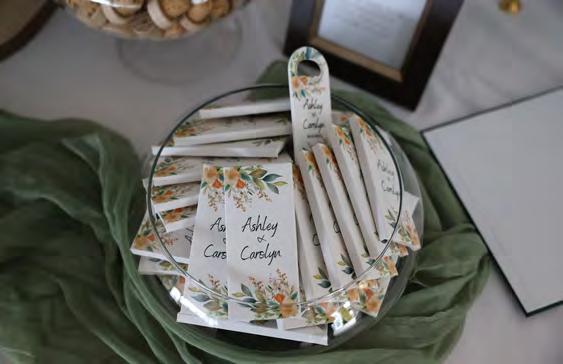 Today’s couples are thinking beyond tradition and focusing on how their guests feel throughout the day. The goal? An experience that’s memorable, engaging, and fun. Live wedding painters, interactive photo booths, 360° photo experiences, customized dessert displays, and even cookiesto-go at the end of the night are just a few ways couples are elevating the guest experience. These thoughtful touches encourage interaction, spark conversation, and create moments guests will talk about long after the wedding ends.