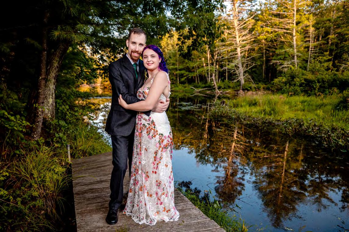 The tree-lined path that led to a dock overlooking the river that ran through the woods was the perfect backdrop for their portraits. We took our time making several portraits, using both digital and film to capture the essence of their love for each other.
