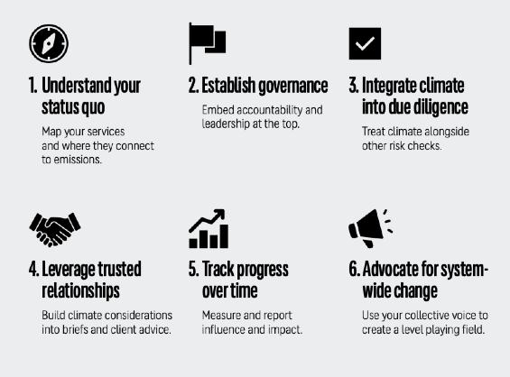 Developed by Oxford Net Zero and Race to Zero, the Serviced Emissions framework looks more widely to help professional service frms in general - including law, accounting, business management, PR and Advertisingunderstand how to reorient their businesses toward the climate transition. It provides a structured approach to identify where organisations infuence client emissions and how they can reduce risk while creating value.