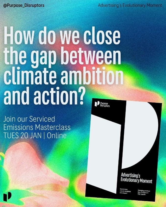 In 2025 we joined Purpose Disruptors Advertised Emissions working group alongside industry leaders from Publicis, Dentsu, Havas, Lucky Generals, Iris, Channel 4 and The Guardian. Originally set up in 2022, the working group wanted to revamp its goals for 2025 and beyond with the aim of evolving Advertised Emissions into a global industry standard and presenting a collective learning opportunity for climate leaders in the advertising industry to be at the forefront of the transition to the low-carbon economy.