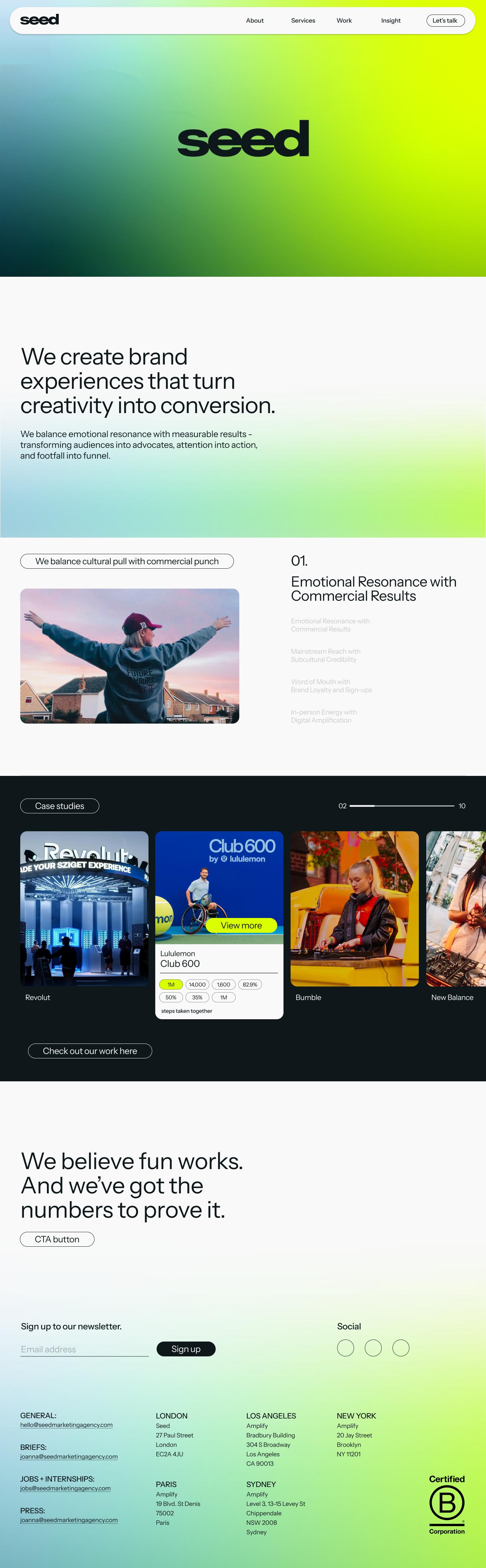 2025 marked a year of deepened collaboration across Amplify’s collective network. We took an active role in steering our sibling agencies, Seed and Wonder, through their own responsibility journeys including Seed achieving B Corp certifcation in October 2025.