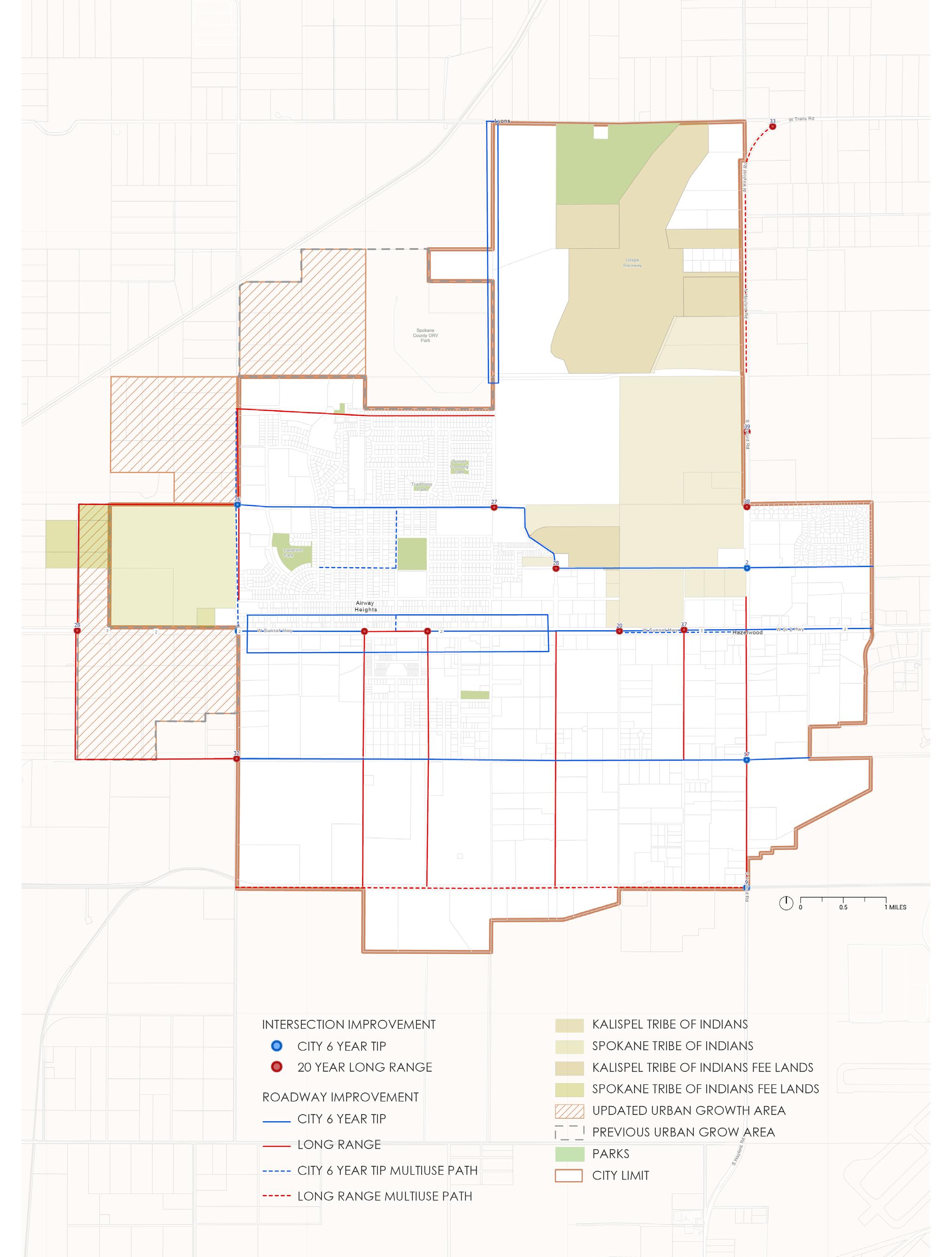 Maintain and improve Airway Heights’ transportation network, on pace and in concert with needs including traffic flow, walking and biking, land use character, and community value.