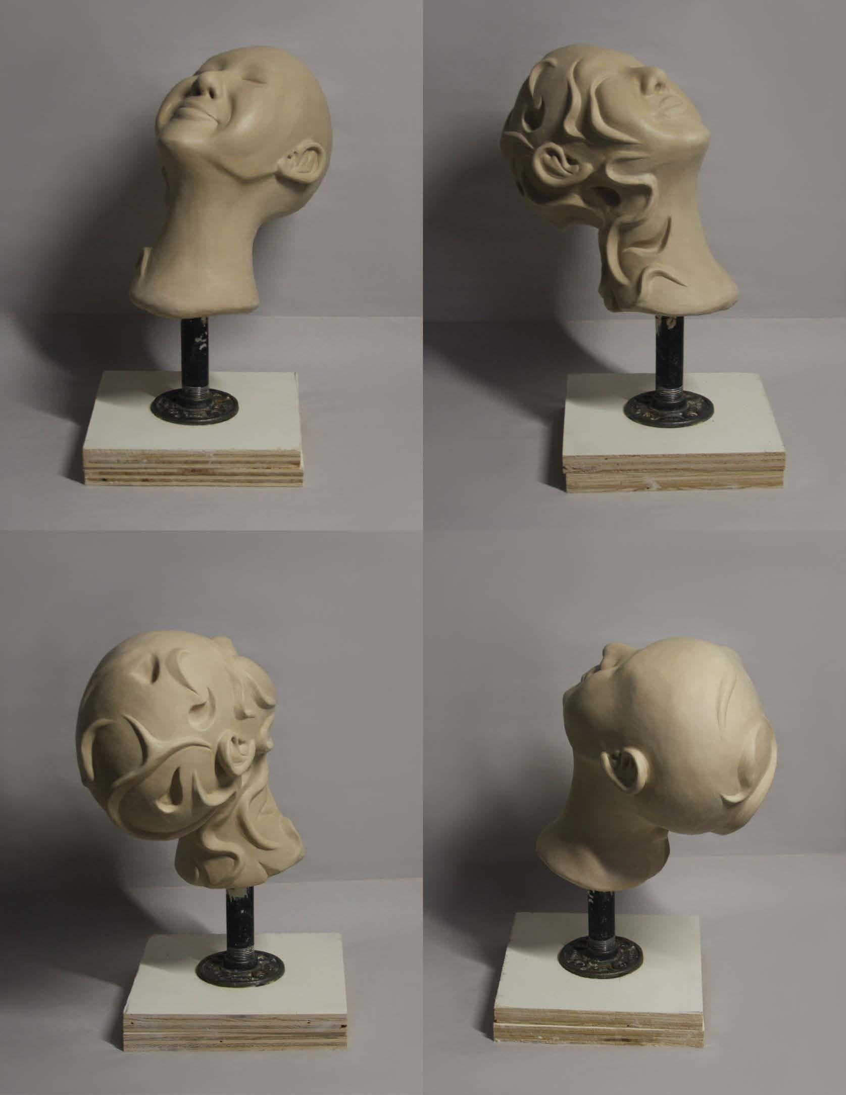 Alyssa Uy creates a range of work from concept design to sculptural pieces. In the future, she hopes to pursue a career in the entertainment arts industry but also uses art as a way to express personal experiences and opinions on real-world issues. This sculpture is a bust in contrasting states depending on the angle you view it, one in a fleeting tranquility, and the other in turmoil. This piece focuses on the duality of a person and the importance of perception. We can never understand the true depths of someone without viewing their whole perspective.
