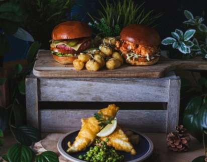 Choose from a crispy chicken burger with chipotle sauce, the Ascot Burger with bacon and smoked applewood cheese, classic battered haddock or tasty mac n cheese –all available for £13.50 Plant-based variations available.