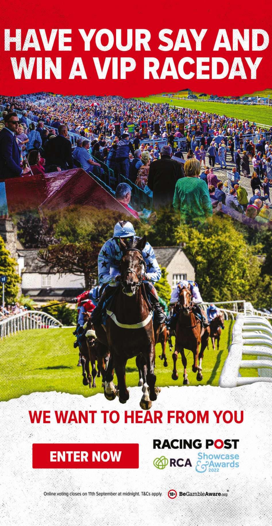 AINTREEAYRBALLINROBE BELLEWSTOWNBEVERLEY CARLISLECARTMELCATTERICK BRIDGECHELMSFORDCITY CHELTENHAMCLONMELCORK C U R R A G H D O W N R O Y A L DOWNPATRICKDUNDALK EPSOMDOWNSEXETERFAIRYHOUSE FAKENHAMGALWAYGOODWOOD GOWRANPARKHAMILTONPARK HAYDOCKPARKHUNTINGDON KELSOKEMPTONPARKKILBEGGAN KILLARNEYLAYTOWNLEICESTER LEOPARDSTOWNLIMERICKLISTOWEL LU D LO W M A R K E T R A S E N MUSSELBURGHNAASNAVAN N E W B U R Y N E W M A R K E T NOTTINGHAMPERTHPONTEFRACT PUNCHESTOWNREDCARROSCOMMON SALISBURYSANDOWNPARKSLIGO STRATFORD-ON-AVONTAUNTON THIRSKTHURLESTIPPERARY TRAMOREWARWICKWETHERBY WEXFORDWINCANTONYORK Watcheveryracelivefrom62racecourses Tojoincall08451114411 orvisitracingtv.com/join ThehomeofBritish&IrishRacing
