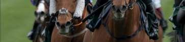Visor worn by No. 3. Tongue Strap worn by No. 1, 4. Visor, Tongue Strap worn by No. 5. Sheepskin Cheek Pieces worn by No. 2.