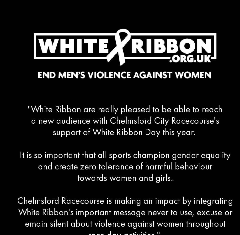 Tonight, you may see our stewards and other racecourse staff wearing a white ribbon, as we proudly support White Ribbon Day. This campaign strives for gender equality and zero tolerance of violence towards women.