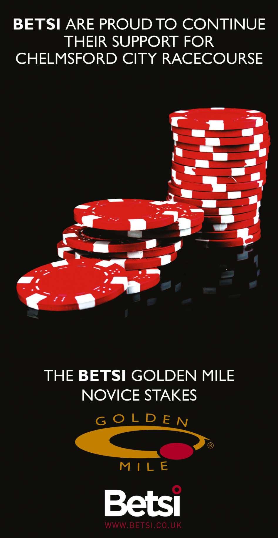 Fourth Race 7.00 - THE BETSI HANDICAP STAKES (CLASS 3) Distributed in accordance with the Stakes and Prize Money Code. £8100 to the winning horse The second to receive £3802, the third £1902 and the fourth £951. for four yrs old and upwards, Rated 71-90 (also open to such horses rated 91 and 92; such horses rated 70 and below are also eligible - see Standard Conditions). £75 stake if the horse is rated 71 or higher, or £15 stake if the horse is rated 70 or lower with £60 extra if the horse is declared to run Declare by 10.00 a.m. January 10th. Lowest weight 8st 4lb; Highest weight 9st 9lb Penalties, after 2022, for each race won 4yo to 6yo 5lb; 7yo and up 4lb Chelmsford City Racecourse will award a £50 cash prize to the person responsible for the horse judged to be best turned out in this race 9 entries at £75. - Closed January 6th, 2023. Owners Prize Money. Winner £6401; Second £3200; Third £1601; Fourth £800. (Penalty Value £8100) SS SEE PAGE 18 FOR THIS RACE.