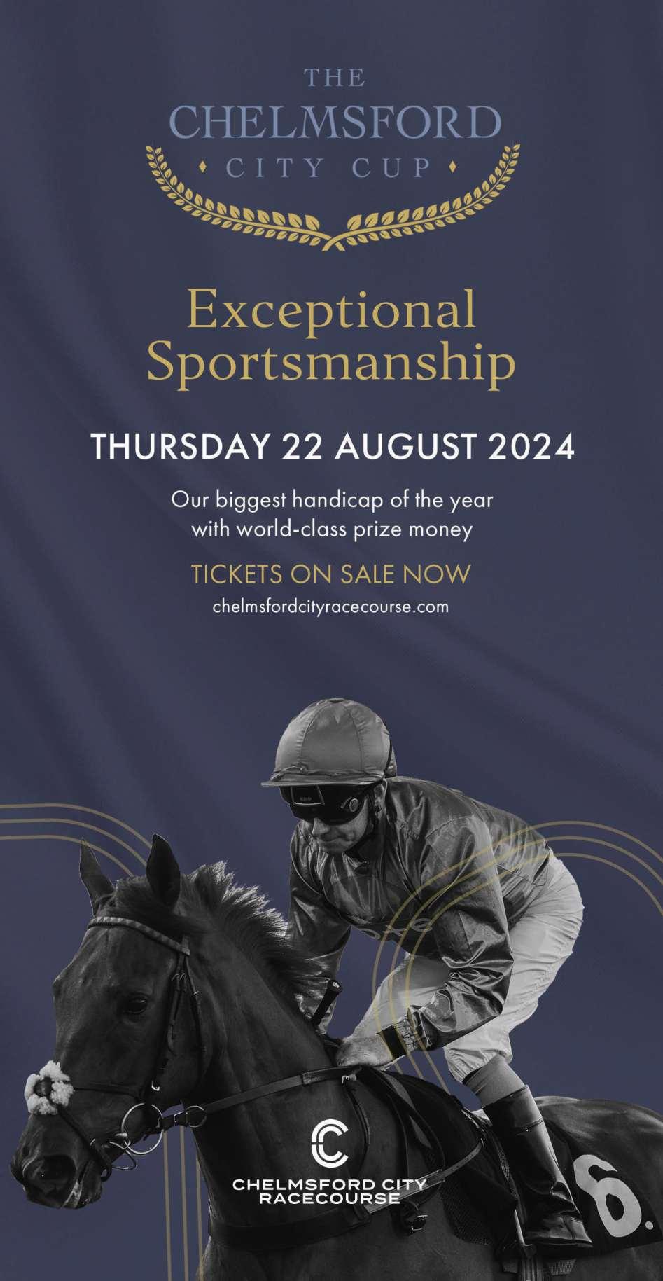 NOTE: For horses reassessed since the publication of the qualifying rating list for entry, the excess in any rating above the rating band shall be added to the weights stated above. Chelmsford City Racecourse will award £50 to the person responsible for the horse judged to be best turned out in this race ELIMINATION: Protection from elimination will operate in the following order Horses which, in the opinion of the Handicapper, have the highest Handicap Rating based on races run up to and including the Saturday prior to closing, except that horses which have run fewer than seven times in a Flat race will be given priority. Random balloting will apply where horses have identical Handicap Ratings. (In the case of horses which have raced fewer than 7 times, no preference will be given to those with the least number of runs. Those with the highest handicap rating will be given preference). 15 entries at £35. - Closed July 31st, 2024. Owners Prize Money. Winner £3159; Second £1580; Third £789; Fourth £395; Fifth £197. (Penalty Value £4004) SS