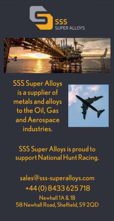 ThirdRace2.20 -THE SSS SUPER ALLOYSNOVICES’ LIMITED HANDICAP STEEPLE CHASE (CLASS 3) (GBB RACE) Distributed in accordancewith the Stakes and PrizeMoneyCode.£15609 to the winning horse Thesecond to receive£7176, the third£3588, the fourth £1794, the fifth £897,the sixth £447,the seventh £350 and the eighth £350.for novice four yrs old and upwards. £150 stakeifthe horse is rated130 or higher,or£30 stakeifthe horse is rated129 or lowerwith £120 extraifthe horse is declared to run Declareby10.00a.m. November 9th. Lowest weight 10st13lb; Highestweight 11st10lb Penalties, after October 29th, 2022, foreach steeple chase won7lb (12lb weight range). Presentations will be made to the winning owner, trainer and jockey anda£150 award given to the stable employeeincharge of the horse judged to be the bestturned out in this race.NB. As aClass3Novices’ Handicap Steeple Chase,horses arepermitted to maketheir chasing debut in this race running off their hurdle rating. 16 entries, 5at£30 and 11 at £150.-Closed November 5th, 2022. Owners PrizeMoney. Winner £11925; Second £5961; Third£2982; Fourth £1491; Fifth £744; Sixth £372;Seventh £280; Eighth £280.(Penalty Value £15609) Weights raised 6lb and paragraph 34 of the Weights and Handicapping Code complied with whereapplicable. SEE PAGE 38 FORTHIS RACE.