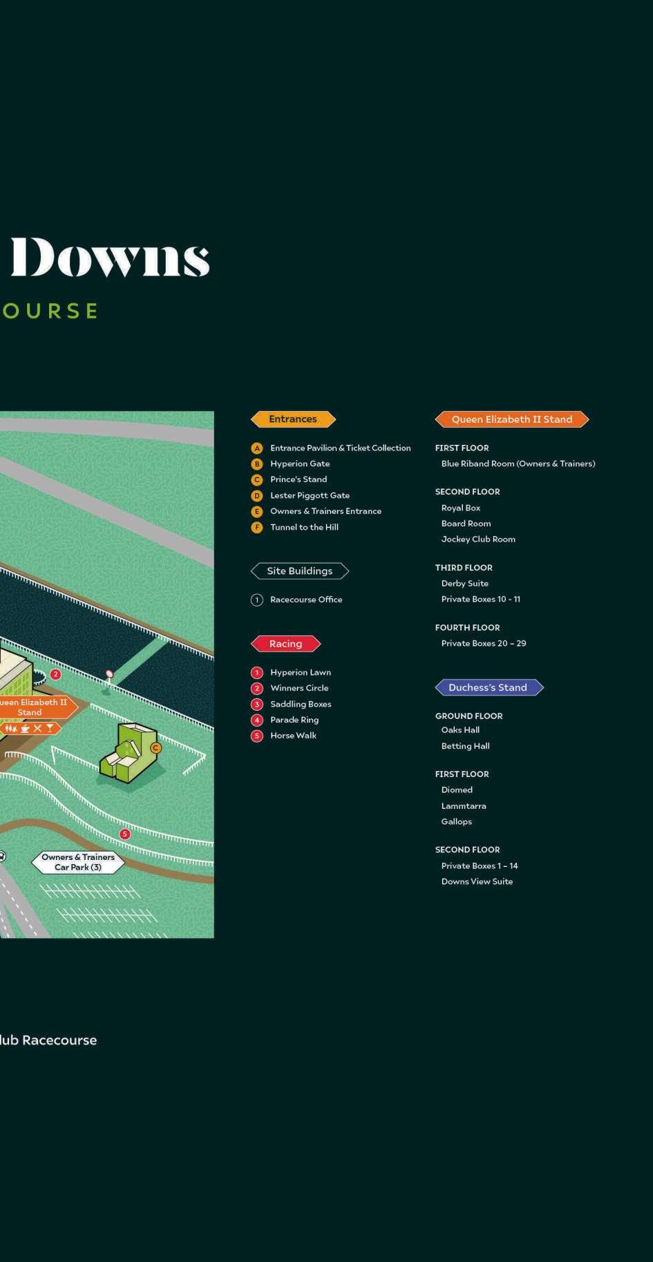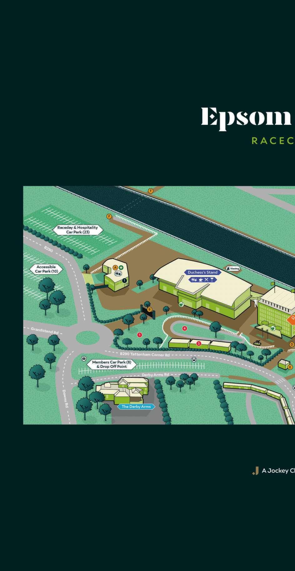 If a total evacuation of the racecourse becomes necessary we will keep you updated on developments via our Public Address system The Racecourse would be grateful if you would observe all Health & Safety requirements whilst you are at Epsom Downs Racecourse. The emergency exits from the bars onto the Grandstand steppings are painted yellow and we would request that you do not stop whilst in this area. We would also request that only those that are disabled use the disabled viewing ramp and that parents keep a close eye on all children and prevent them from climbing the running rails and getting on to the actual racecourse. We would also like to remind racegoers that the first aid room is located at the Entrance Pavilion