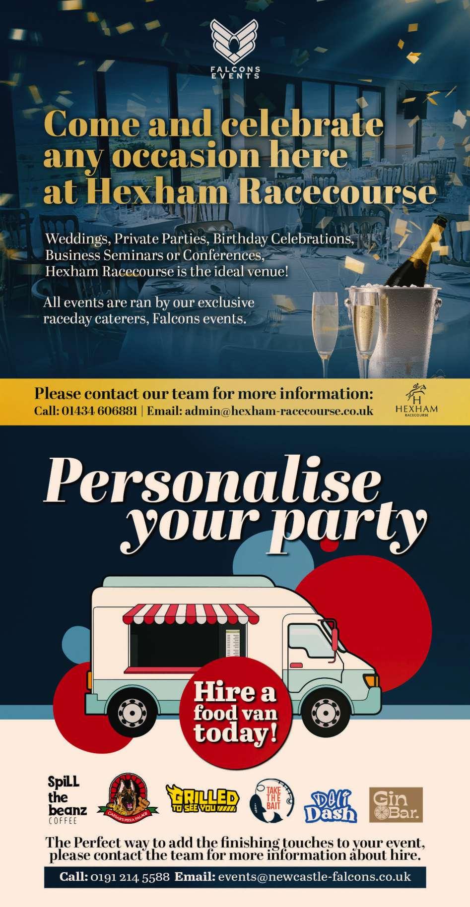 Race times will appear on our website www.hexham-racecourse.co.uk once they are published nearer the date. PLEASE CHECK BACK PAGE OF RACE CARD FOR REMAINING 2024 FIXTURES AND PROVISIONAL DATES FOR FIRST 9 FIXTURES OF 2025.
