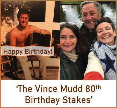 Sixth Race 3.58 THE VINCE MUDD 80TH BIRTHDAY HANDICAP HURDLE RACE (CLASS 5) Distributed in accordance with the Stakes and Prize Money Code £5119 to the winning horse The second to receive £2358, the third £1178, the fourth £590, the fifth £350 and the sixth £350 for four yrs old and upwards, Rated 0-100 (also open to such horses rated 101 and 102 see Standard Conditions). Enter by noon, October 24th and pay £45 stake, Declare by 10.00 a.m. October 28th. Penalties, after October 22nd, 2022, for each hurdle race won 7lb Chris Letcher, family & friends have generously sponsored this race A memento will be presented to the winning owner A cash prize will be presented to the person judged to be responsible for the best turned out horse in this race 14 entries at £45. Closed October 24th, 2022. Owners Prize Money. Winner £3923; Second £1962; Third £980; Fourth £491; Fifth £280; Sixth £280 (Penalty Value £5119.24)