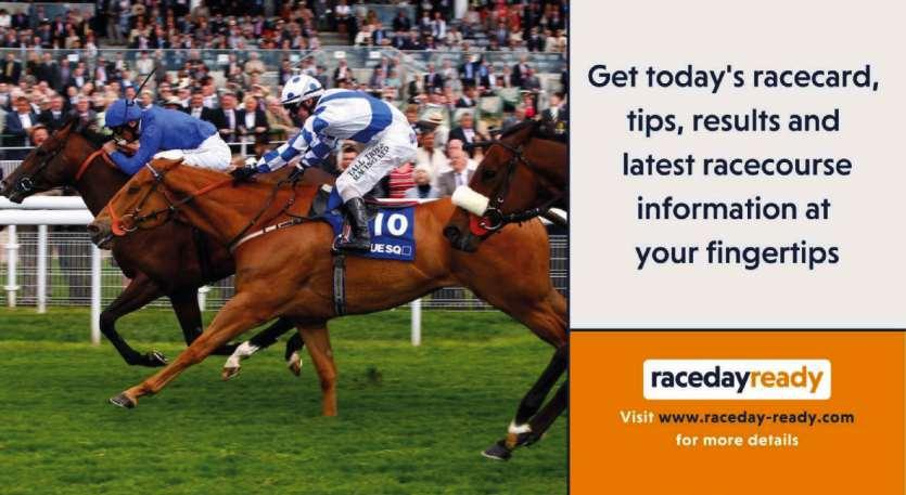 Customers of the Boards and Rails bookmakers should check their itemised tickets immediately on receipt, as mistakes cannot be rectified after the “off”. Customers are reminded to retain all betting tickets until after the weigh-in, as immediate payment will be made only on production of the original ticket. All tickets will remain valid for one month. Get today’s racecard, tips, results and latest racecourse information at your fingertips Visit www.raceday-ready.com for more details