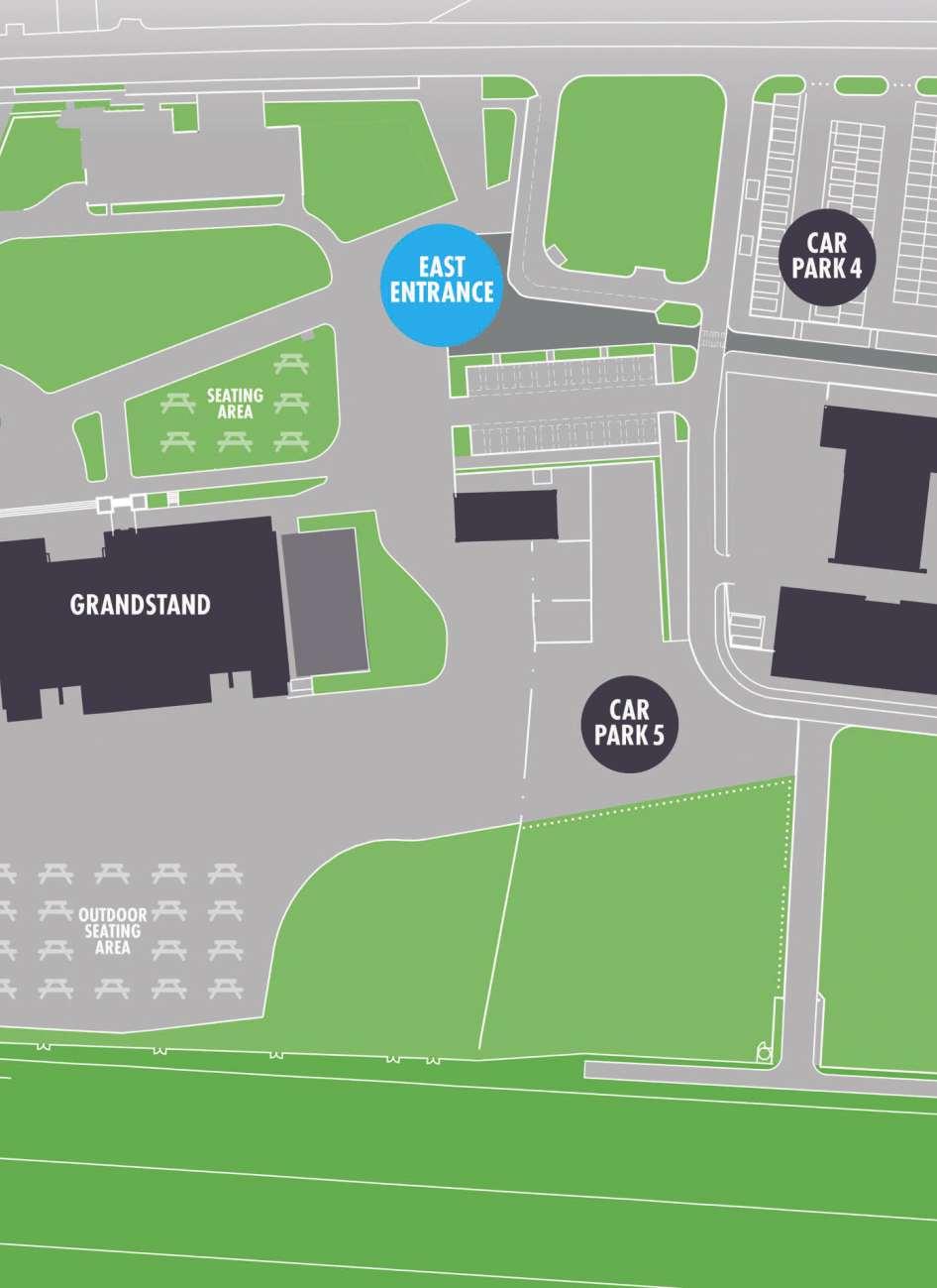 SITE LAYOUT 1 Hampshire Stand Baby Changing Facilities (G) Toilets (G) Bar (G) The Hennessy Restaurant (2nd) 2 Berkshire Stand Annual Members (1st) Berkshire Premier Club (Private) The Long Room Bar and Kitchen (1st) Betting Facilities (1st) Hospitality Suites (2nd-5th) Lounge 303 (Private) BIG SCREEN 1 2 4 5 6 7 CAR PARK1 SOUTH ENTRANCE QUIET ZONE
