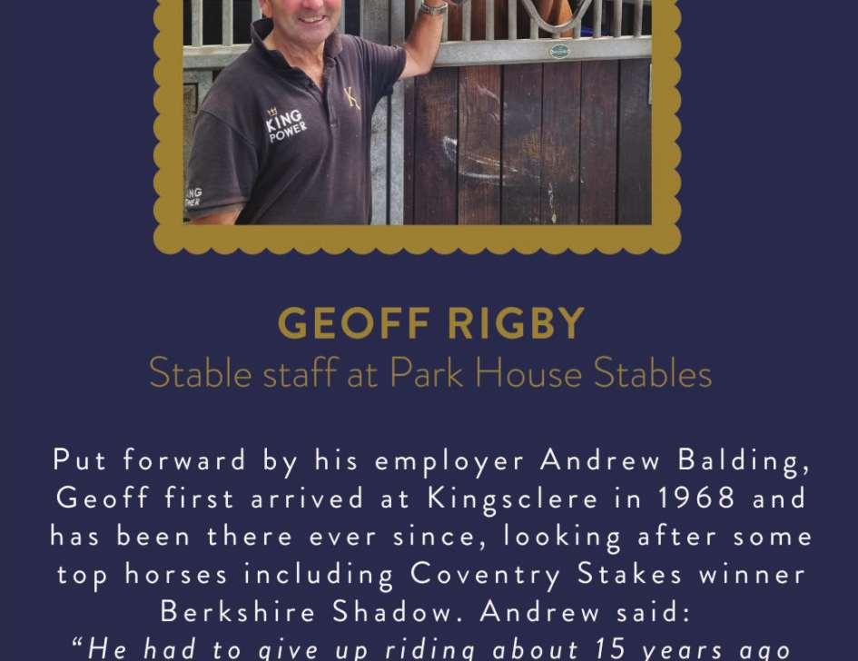 As supporters of the charity Racing Welfare, today we will be presenting an award to Geoff Rigby who has won a Lifetime in Racing Award for his contributions well done Geoff!