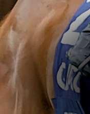 Visor worn by No 3, 14. Blinkers, Tongue Strap worn by No 7.
