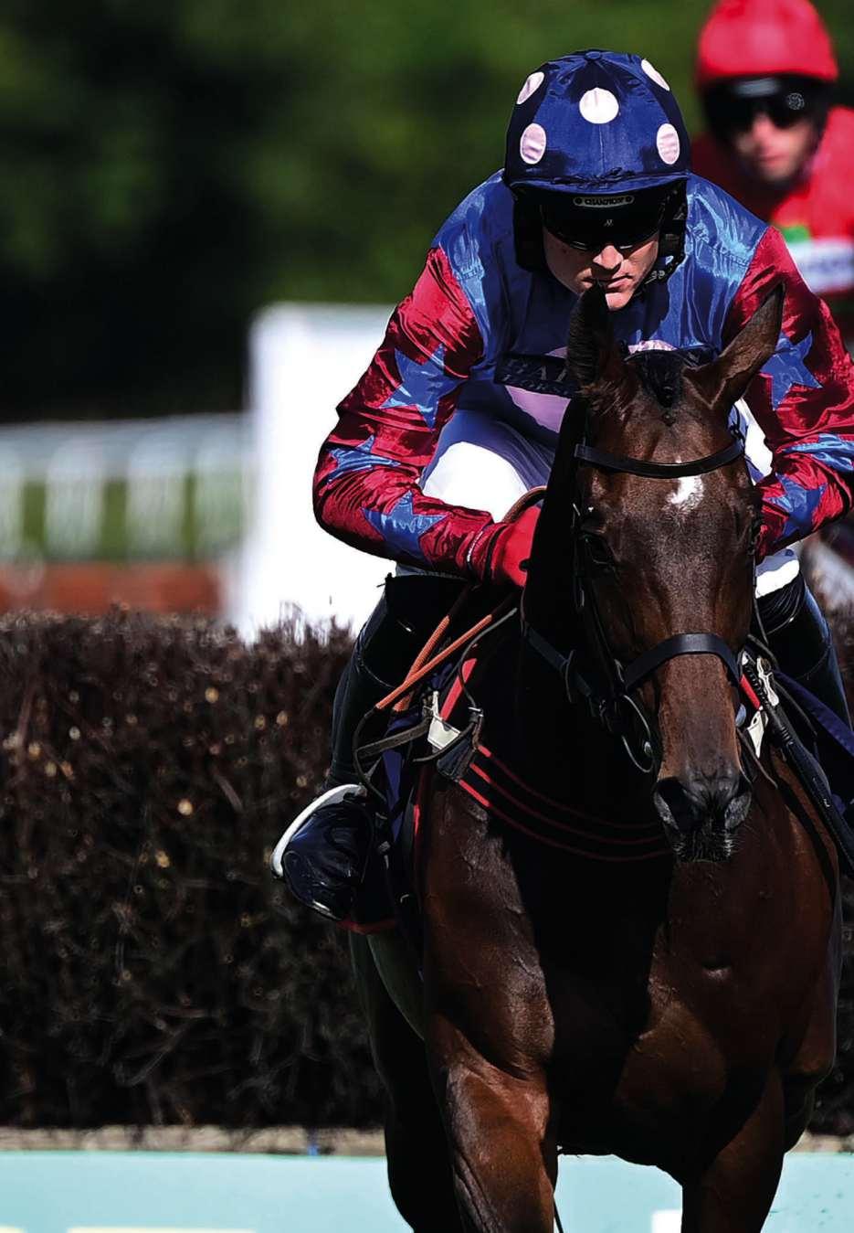 Br BREEDING O OWNER B BREEDER J JOCKEY T TRAINER S SPONSOR RACE ANALYSIS 25 SEVENTH RACE 4.35 2m 75y THE newtonabbotracing.com NOVICES’ LIMITED HANDICAP STEEPLE CHASE (CLASS 3) (GBB RACE) for novice four yrs old and upwards Total race value £13800 Owners Prize Money 1st £5175, 2nd £2588, 3rd £1293, 4th £647. (Penalty Value £6753.04) COLOURS NO HORSE AGE ST-LB JOCKEY 1 SILENT REVOLUTION (IRE) (180)213/1P1- D 6 11-10 Br B g Sholokhov (IRE) Watson River (IRE) Harry Cobden J O Mr Colm Donlon Paul Nicholls, Ditcheat T B D. Murphy Morson Group S TIMEFORMVIEWBackinmuchcalmerwatersafterpulledupintheSupremeatCheltenham,madeit2winsfrom3startsoverhurdles in novice at Chepstow in April, showing a willing attitude. Looks the type to make up into a better chaser TFRHHHHI BHA136 2 BOOTHILL (IRE) (77)1/3402-P D 7 11-6 Br B or Br g Presenting Oyster Pipit (IRE) Jonathan Burke J O Brian & Sandy Lambert Harry Fry, Corscombe T B Noel James Citipost S TIMEFORM VIEW Useful bumper/hurdles winner who possibly found heavy ground against him back from 4 months off over hurdles at Galway (22.7f)inJuly Failedtomeet expectationssoleprevioustryoverfencesbutremainswithpotential inthis sphere. TFRHHHHH BHA132 3 DATSALRIGHTGINO (GER) (185)2/11PP4- 6 11-3 Br B g It’s Gino (GER) Delightful Sofie (GER) Gavin Sheehan J O The GD Partnership Jamie Snowden, Lambourn T B Stall 5-Stars Betvictor S TIMEFORM VIEW Made bright start over hurdles when winning novices on first 2 outings. Faced stiff tasks when pulled up next 2 starts, but back on track when fourth of 8 in Cheltenham novice (20.2f) in April. Has work to do making chase debut. TFRHHIII BHA129 4 HADDEX DES OBEAUX (FR) (360)1501/21- 5 11-1 Br B g Saddex Shifra (FR) Jamie Moore J O Mr O. S. Harris Gary Moore, Horsham T B Mme Marie Devilder & Thibault Devilder Tote S TIMEFORM VIEW Bumper/hurdles winner in France who built on encouraging stable debut when making all in handicap hurdle at Fontwell (19.2f) last October Off the track since, but he’s am interesting contender on chase debut TFRHHHII BHA127 DECLARED RUNNERS 4 2021: WAR LORD (GER) 6 11 8 Brendan Powell 9-2 (Colin Tizzard) 4 ran Tongue Strap worn by No. 2. Probable S.P.’s: 15-8 Boothill (IRE), 2-1 Silent Revolution (IRE), 10-3 Haddex des Obeaux (FR), 13-2 Datsalrightgino (GER) PLAY SMARTER BOOTHILL looked an exciting prospect at the start of his career prior to disappointing when upped in trip for his chase debut on his third outing under Rules. However, he got back on the up over hurdles on his final start last sesaon and the 7-y-o remains capable of better over fences. He can leave his reappearance behind to get the better of Silent Revolution and Haddex des Obeaux. TIMEFORM PREDICTION: 1.BOOTHILL (IRE) 2.SILENT REVOLUTION (IRE) 3.HADDEX DES OBEAUX (FR) RACE RESULT 1ST 2ND 3RD 4TH RACE TIME DISTANCE RA CE SE VEN GREAT BRITISH BONUS SCHEME The Great British Bonus (GBB) offers multiple bonuses of up to £20,000 per eligible race for British-bred fillies and mares. LEADING COURSE TRAINER (17-22): P Nicholls (41 wins from 166 runners, 25%) runs SILENT REVOLUTION TRAINER-IN-FORM (LAST 14 DAYS): P Nicholls (5 wins from 12 runners, 42%) runs SILENT REVOLUTION LONGEST TRAVELLER: HADDEX DES OBEAUX trained by G L Moore, Horsham, 184 miles.