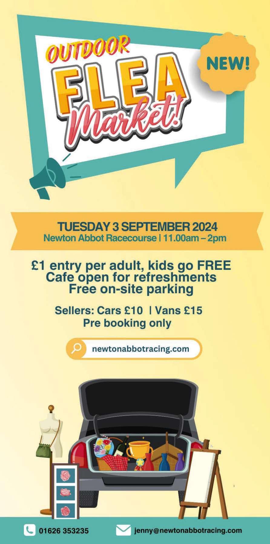 Third Race 3.20 - THE VISIT attheraces.com HANDICAP STEEPLE CHASE (CLASS 5) Distributed in accordance with the Stakes and Prize Money Code. £6152 to the winning horse The second to receive £2830, the third £1415, the fourth £708 and the fifth £353. for five yrs old and upwards, Rated 0-100. Enter by noon, August 26th and pay £40 stake, Declare by 10.00 a.m. August 29th. Penalties, after August 24th, 2024, for each steeple chase won 7lb. Newton Abbot Races are kindly supporting the prize money of this race and will present a memento to the winning owner In addition a £60 cash prize will be awarded to the lad or lass responsible for the best turned out horse in the race. 14 entries at £40. - Closed August 26th, 2024. Owners Prize Money. Winner £4705; Second £2352; Third £1177; Fourth £588; Fifth £294. (Penalty Value £6152.36)