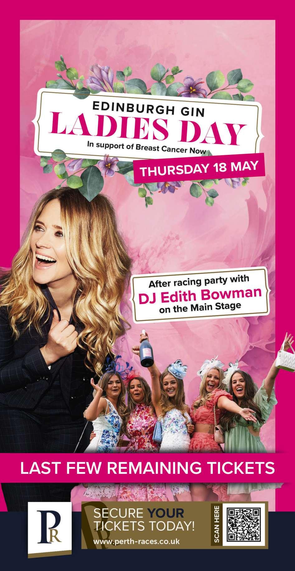 Fourth Race 3.15 - THE EDITH BOWMAN AT PERTH LADIES DAY NOVICES’ LIMITED HANDICAP STEEPLE CHASE (CLASS 3) (GBB RACE) Distributed in accordance with the Stakes and Prize Money Code £6865 to the winning horse The second to receive £3159, the third £1579, the fourth £790 and the fifth £393 for novice five yrs old and upwards, Rated 0-125 (also open to such horses rated 126 and 127 - see Standard Conditions). £40 stake if the horse is rated 99 or higher, or £8 stake if the horse is rated 98 or lower with £32 extra if the horse is declared to run Declare by 10.00 a.m. April 26th. Lowest weight 10st 5lb; Highest weight 11st 10lb Penalties, after April 15th, 2023, for each steeple chase won 7lb Kier Construction has generously sponsored this race and shall present a memento to the winning owner as well as a £50 cash prize to the stable staff in charge of the best turned out horse in this race 19 entries at £40. - Closed April 22nd, 2023. Owners Prize Money. Winner £5251; Second £2625; Third £1313; Fourth £657; Fifth £328. (Penalty Value £6865.30)