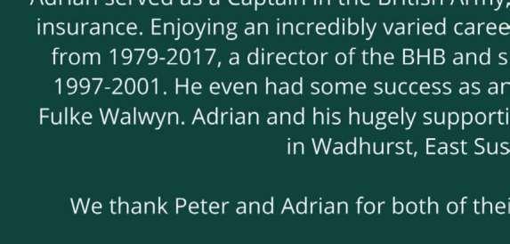 Fourth Race 3.40 - THE CELEBRATING 25 YEARS OF RACECOURSE OWNERSHIP HANDICAP STEEPLE CHASE (CLASS 4) Distributed in accordance with the Stakes and Prize Money Code. £6337 to the winning horse The second to receive £2916, the third £1458 and the fourth £729. for five yrs old and upwards, Rated 0-110 (also open to such horses rated 111 and 112 - see Standard Conditions). £60 stake if the horse is rated 84 or higher, or £12 stake if the horse is rated 83 or lower with £48 extra if the horse is declared to run Declare by 10.00 a.m. April 7th. Penalties, after April 1st, 2023, for each steeple chase won 7lb. Peter Savill & Adrian Pratt have kindly sponsored this race. A memento will be presented to the winning owner. In addition, they will award a £50 cash prize to the stable employee in charge of the horse judged to be best turned out in this race. 11 entries at £60. - Closed April 3rd, 2023. Owners Prize Money. Winner £4847; Second £2423; Third £1212; Fourth £606. (Penalty Value £6337.20) Weights lowered 3lb.
