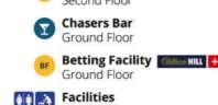 Premier bar with views of the parade ring and finishing line. Serving a range of hot pies, sandwiches and light refreshments. William Hill Betting shop and Tote betting facilities within.