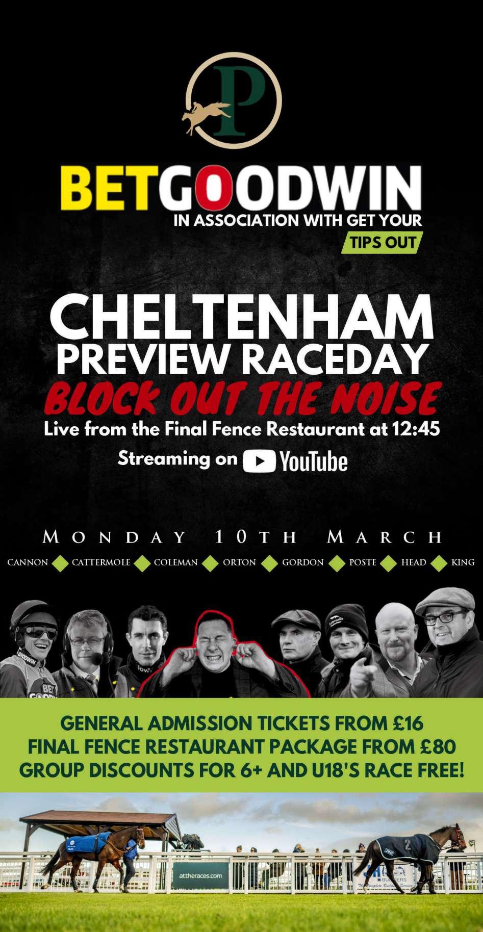 Fourth Race 3.15 - THE BETGOODWIN AND EVERY MATRIX HANDICAP HURDLE RACE (CLASS 4) Distributed in accordance with the Stakes and Prize Money Code. £5281 to the winning horse The second to receive £2430, the third £1215, the fourth £608 and the fifth £303. for four yrs old and upwards, Rated 0-110 (also open to such horses rated 111 and 112 - see Standard Conditions). £50 stake if the horse is rated 84 or higher, or £10 stake if the horse is rated 83 or lower with £40 extra if the horse is declared to run Declare by 10.00 a.m. February 8th. Penalties, after February 1st, 2025, for each hurdle race won 7lb. BetGoodwin have generously sponsored this race and a memento will be presented to the winning connections. A £50 cash prize given to the stable employee in charge of the horse judged to be the best turned out in this race. 9 entries at £50. - Closed February 4th, 2025. Owners Prize Money. Winner £4039; Second £2019; Third £1010; Fourth £505; Fifth £252. (Penalty Value £5281) SEE PAGE 26 FOR THIS RACE.