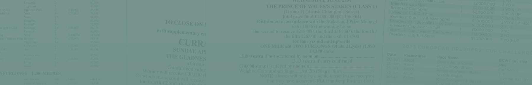 The British Horseracing Authority has modified paragraphs 5 and 15 of the Race Entry Code, the Division of Races and Elimination and Balloting Procedures sections of the Race Administration Code and the Stakes and Prize Money Code NOTE:- Entries for this race will be accepted at the time of closing for horses which do not have a registered name. However, such horses will be disqualified and removed from the race if the name has not been registered by Tuesday, July 4th, 2023, in accordance with the Horse Naming Code. For horses trained in Great Britain, Ireland or the Channel Islands, an acceptable application must be made by the previous Friday Horses entered for this race do not have to be implanted with a microchip until July 4th, 2023, the first scratching deadline. ELIMINATION: Runners in this race will be reduced by the elimination of those horses which, in the opinion of the BHA Handicapper, have the lowest Handicap Rating or, if they do not qualify for an official rating under the Rules of Racing, have the lowest assessment made by the BHA Handicapper from their performances on the racecourse so far Form will be taken into account up to and including Saturday, September 30th. Horses which have not run will be eliminated first by random ballot. (£20000 minimum added to stakes). For a list of Stallion Median Prices, please refer to the Supplements previously published in The Racing Calendar, or see the Stats & Reports section accessed from the Information menu on the BHA Racing Administration Internet site (www2.racingadmin.co.uk), sub-headed ‘Racing Calendar Supplements’, or contact the Weatherbys Weight-Adding Desk. 50% OF THE ENTRY STAKE PAYMENTS, TOTALLING £375, WILL BE REIMBURSED TO THE OWNER WHEN THE HORSE HAS BEEN DECLARED TO RUN AND IS ELIMINATED FROM THIS RACE. SPECIAL NOTES: 1. The advertised Total Race Value stated in the race conditions is a fixed amount and will not be increased. 2. In the event of elimination proving necessary, the eliminated horses will be refunded according to the conditions of the race. 3. If there is still an excess of Stakes, i.e. the amount of the Owners’ Stakes exceeds the advertised Total Prize Fund value less the guaranteed racecourse and sponsors contribution, as stated in the race conditions, this excess will be refunded to Owners as follows: a. The proportion of Stakes generated at each stage will be calculated (ignoring horses that have already received a full or partial refund of that stage payment due to elimination) b. Whatever proportion of the excess that was generated at each stage will be divided equally between all horses which paid at that stage.
