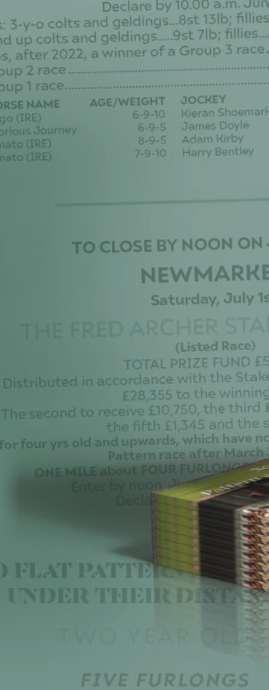 Enter by noon, May 2nd and pay £790 stake Scratch by noon, May 30th or pay £900 Confirm by noon, June 15th and pay £560 Supplementary Entry by noon, June 15th and pay £13125 stake Declare by 10.00 a.m. June 19th