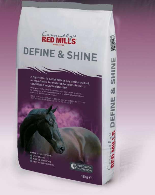 Define & Shine has been a valuable addition to our feeding routine. It allows us to add in extra calories without having to considerably up the quantity of feed. Being low starch and containing vitamin E we can even feed it to horses prone to tying up.
