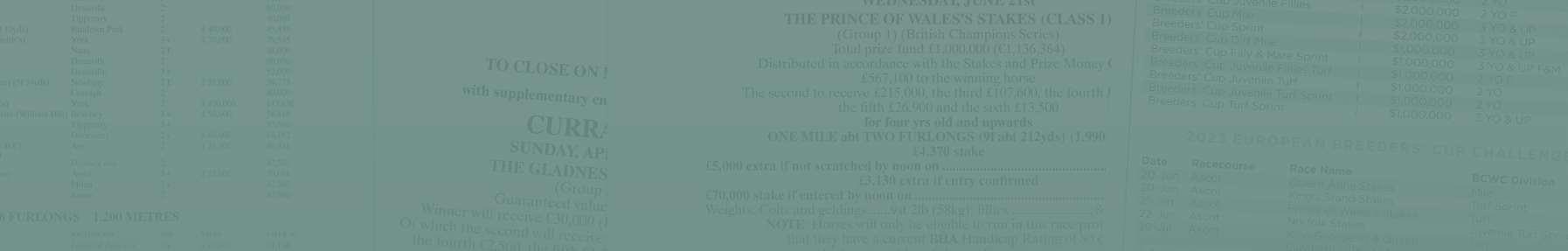Weights: 3-y-o colts and geldings...8st 12lb; fillies...8st 9lb 4-y-o and up colts and geldings...9st 9lb; fillies...9st 6lb NOTE: Horses will only be eligible to run in this race provided that they have a current BHA Handicap Rating of 80 or higher at midday of the confirmation stage. Horses which do not qualify for a rating may also be eligible providing the BHA Handicapper is satisfied that the horse’s racecourse performances up to and including the day before confirmation merit a provisional assessment of 80 or higher Horses which have not run will not be eligible. QIPCO has generously sponsored this race and will present a memento to the winning owner, trainer, jockey and lad/lass. In addition, a cash prize of £200 will be awarded to the stable employee in charge of the best turned out horse in this race. Breeders’ Cup Owners’ Premiums and the Breeders’ Cup “Win and You’re In” Program apply to this race. For full details, please contact Ascot Racecourse. All number cloths to be carried in this race have been sponsored and will carry the name/logo of QIPCO The sponsorship payment of £500 will be distributed equally amongst all horses starting in this race in accordance with paragraphs 24 to 27 of the Stakes and Prize Money Code.