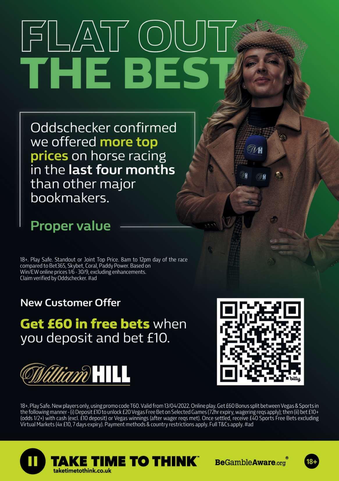 PROBABLE S.P.’s 5-1 Elegant Erin (IRE), 6-1 Our Absent Friends (IRE), 17-2 Scoops Ahoy (IRE),Albegone (GB), 9-1 Curious Rover (IRE), 11-1 Seantrabh (IRE), 14-1 Faro de San Juan (IRE), 16-1 Vince L’Amour (IRE), Reigning Profit (IRE), Ticktyboo (GB), 22-1 Jungle Land (IRE), Twelfth Knight (IRE)