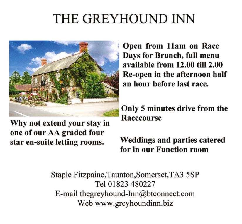 30 7 The Result 1st2nd Distance 3rd 4th Time RACING AT TAUNTON 2022/23 Thursday 8th December Wednesday21st December* Friday 30th December Monday 9th January* Saturday 21st January Tuesday 7th February* Tuesday 21st February* Thursday 2nd March* Monday 13th March Monday 20th March Thursday 30th March Thursday 13th April Thursday 27th April** Timings subject to change * 6 races scheduled ** Evening Meeting